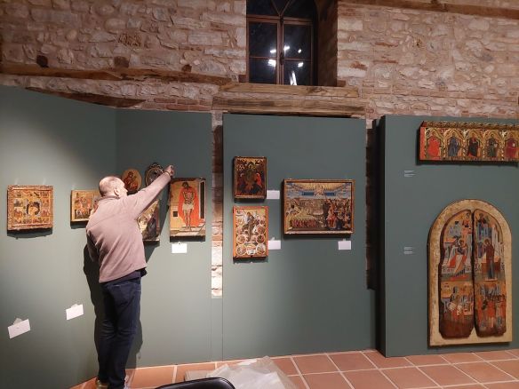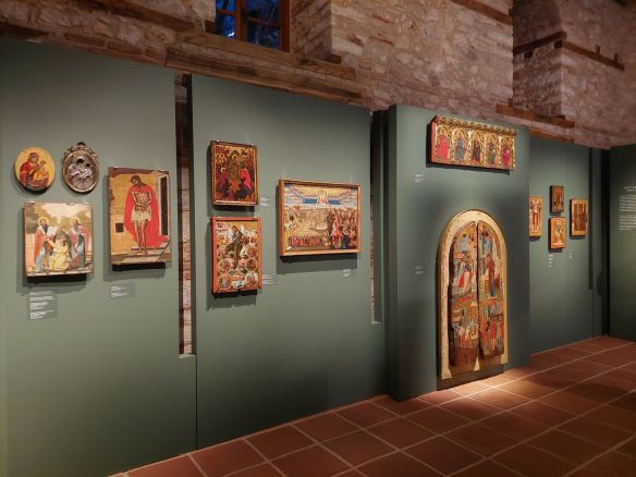Το ιδιαίτερο αυτό έργο, μια εικόνα του Αγίου Νικολάου σε περίτεχνο, ξυλόγλυπτο πλαίσιο (διαστ.38 x 30 x 3 εκ.), συντηρήθηκε στα εργαστήρια του μουσείου, σε δύο φάσεις: Η πρώτη πραγματοποιήθηκε το 2015, είχε ως στόχο να διασώσει το έργο από την κατάρρευση: το αποσαθρωμένο ξύλο εμποτίστηκε και απεντομώθηκε, τα αποχωρισμένα λεπτά του τμήματά ενισχύθηκαν, συγκολλήθηκαν και εν τέλει προσαρμόσθηκαν σε ένα σταθερό αδρανές υπόβαθρο, από plexiglass, μέσω ενός σύνθετου συστήματος περικοχλίων και ελατηρίων πιέσεως, που τα συγκρατεί στη σωστές θέσεις. Στη δεύτερη επέμβαση που έγινε το 2017, στερεώθηκαν τα αποκολλημένα τμήματα ζωγραφικής και προετοιμασίας και αφαιρέθηκαν τα τρία, εξαιρετικά οξειδωμένα στρώματα βερνικιών που κάλυπταν ανομοιόμορφα τη ζωγραφική και το πλαίσιο. Το εκτεταμένο δίκτυο βαθιών ρωγμών στο κεντρικό διάχωρο, έχει αποδομήσει την ενότητα της μορφής, ενώ δραστικότατες απόπειρες καθαρισμού κατά το παρελθόν, έχουν καταστρέψει για πάντα τις λεπτές πινελιές των επιφανειακών ζωγραφικών στρωμάτων. Σε επιλεγμένες φθορές έγινε χρωματική συμπλήρωση, με στόχο κυρίως, την αποκατάσταση της αναγνωσιμότητας της κυριολεκτικά κατακερματισμένης μορφής του Αγίου Νικολάου.