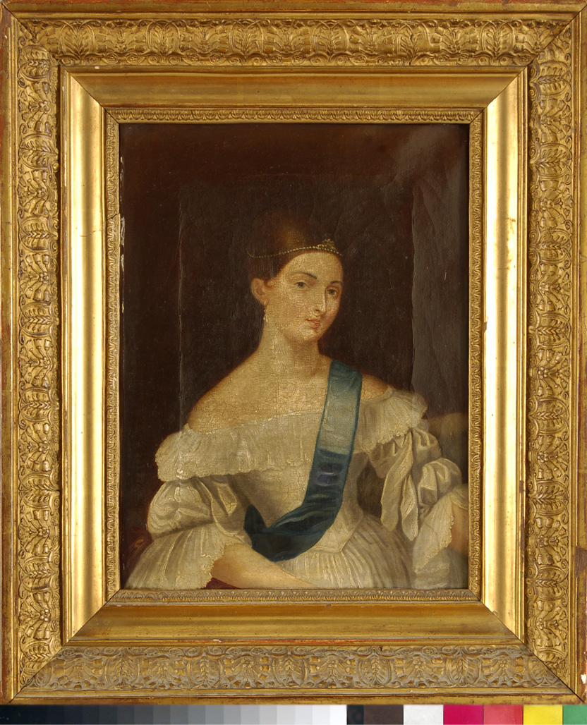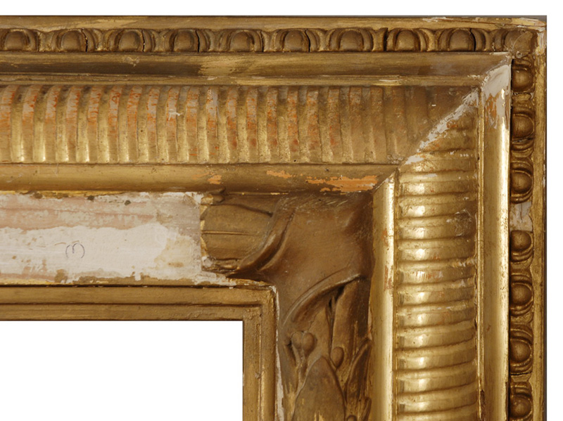 The cleaning of the frame was deemed necessary for the restoration of the original image. The varnish covering the frame as well as the older gap fillings and unsuitable adhesive materials were removed. Where needed, new additional embossed parts made of plaster were constructed. Finally, the damages and the new parts of the frame were colour touched and varnished with a synthetic resin.