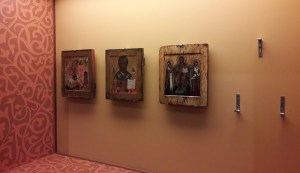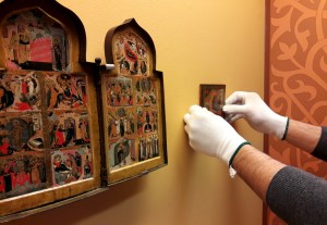 The wide distribution of Russian religious artworks in the Greek communities and religious centers was achieved through a composite nexus that penetrated the whole stratification of both societies. Starting from the Tsar and the exchange of formal diplomatic gifts to the zeteai, petitions for financial support addressed by the Greek monasteries to the Russian orthodox, as well as the trading activity of Greek and Russian merchants. The exhibition will shed light to the various aspects of the phenomenon, focusing on the movement of objects and their reception by and integration in a new ethnic, religious and cultural environment. The various paths and diverse forms of reception and adoption in the Greek world will be explored, as well as issues of dating of the Russian artworks and attribution to Russian workshops. Exhibition installation by The Benaki Museum conservation department.