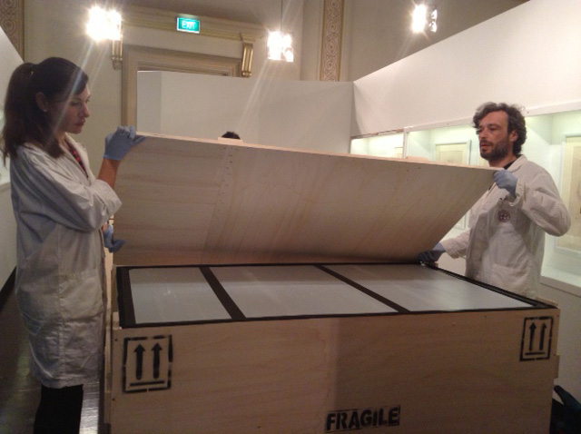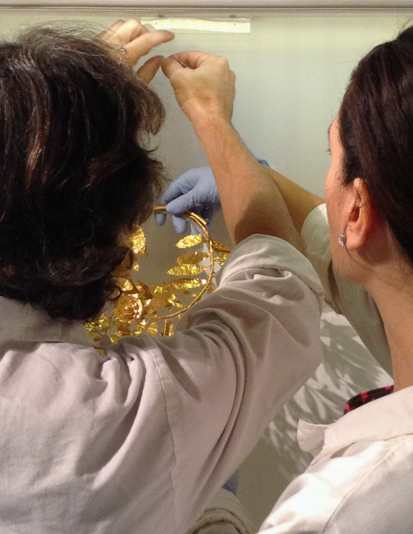 Ομάδα συντηρητών προετοίμασε τα αντικείμενα, σύνταξε δελτία κατάστασης, συνόδευσε τα αντικείμενα και επέβλεψε τον τρόπο ανάρτησης τους.